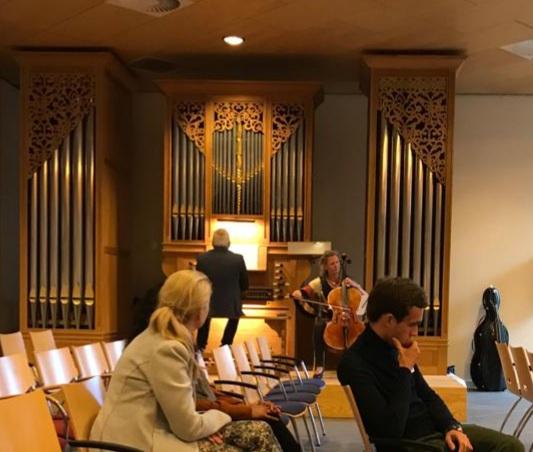 Coördinator JobHulpMaatje Cora van den Berg en coördinator SchuldHulpMaatje Rudolf van Tilborg spelen 2 muziekstukken (largo en allegro) uit een sonate van Vivaldi voor Cello en Basso continuo.